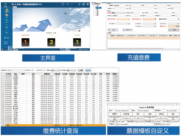 收費管理軟件主要實現(xiàn)開戶、充值繳費、補卡、換表、銷戶、繳費記錄查詢、報表統(tǒng)計、票 據(jù)自定義等功能;